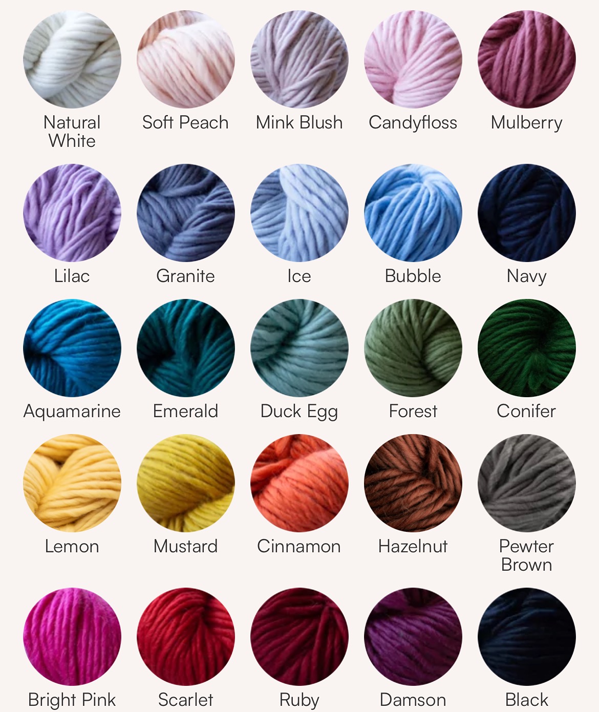 Please see the wool colour chart below, for my super chunky designs and some of my customer’s bespoke orders. Happy creating! 🤍